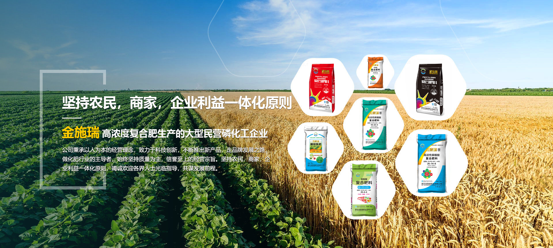湖北金施瑞肥業(yè)有限公司是一家以生產(chǎn)高濃度復(fù)合肥為主導(dǎo)產(chǎn)品的大型民營(yíng)磷化工企業(yè),在湖北、河南等地均建有大型的現(xiàn)代化生產(chǎn)基地。根據(jù)各地的土壤情況不同由本公司專業(yè)的研發(fā)機(jī)構(gòu)專門(mén)為各地區(qū)研制不同配方的化肥,真正做到測(cè)土配方施肥。